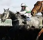 Tony Dobbin (born 1 May 1972) is a retired Northern Irish National Hunt jockey who rode mainly in Great Britain. He rode the winner of the Grand National on Lord Gyllene in 1997 for owner Sir Stanley Clarke CBE, and won over 1,200 races during his career in the saddle. He was the regular stable jockey for Nicky Richards. He retired from racing on Thursday, 10 April 2008 riding the winner of his final race, Ballyvoge, at Carlisle Racecourse. He has assisted his wife, Rose Davidson, training racehorses since 2009.[1]