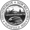 Chief Masconomet, for whom Masconomet Regional High School is named, was the sagamore or chief of the Agawam at this time. He welcomed Massachusetts Bay Colony Governor John Winthrop on his arrival in Salem Harbor in 1630. Masconomet deeded all the Agawams' land to Winthrop in 1638 in exchange for twenty pounds sterling. The English had settled within the bounds of modern-day Topsfield by 1643. They originally named their settlement New Meadows.[3] Tradition has long held that the Agawam called the place Shenewemedy, meaning "the pleasant place by the flowing waters." More recent historians believe that Shenewemedy was how the Agawam pronounced New Meadows, rather than a word in their own language.[4]
