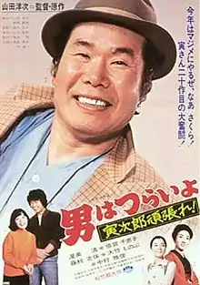Tora-san Plays Cupid (男はつらいよ 寅次郎頑張れ!, Otoko wa Tsurai yo: Torajirō Gambare!) aka Tora-san, Hold Out![1] is a 1977 Japanese comedy film directed by Yoji Yamada. It stars Kiyoshi Atsumi as Torajirō Kuruma (Tora-san), and Shiho Fujimura as his love interest or "Madonna".[2] Tora-san Plays Cupid is the twentieth entry in the popular, long-running Otoko wa Tsurai yo series.