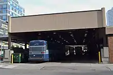 The Toronto Coach Terminal is the central bus station for inter-city services in Toronto, Ontario, Canada. It is located at 610 Bay Street, in the city's downtown. Opened in 1931 as the Gray Coach Terminal, the Art Deco style terminal was home base for Gray Coach, an interurban bus service then owned by the Toronto Transit Commission (TTC). It replaced an earlier open air terminal, the Gray Line Terminal.[2] The terminal is used today by Coach Canada, Greyhound Canada, and Ontario Northland bus lines.