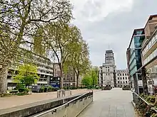 Torrington Square is a square in Bloomsbury, owned by the University of London, located in central London, England.[1] Today it is a square in name only, most of the houses having been demolished by the university. The southern end of the square is dominated by the University of London's Senate House. Birkbeck College and the School of Oriental and African Studies (SOAS) are located here. To the southwest is Malet Street and to the southeast is Russell Square. The square is the site of a weekly farmers' market, held on Thursdays.[2]