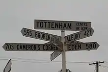 Tottenham lies in a wheat-growing area. A cairn marks the centre of New South Wales and is located 33 km west-north-west of Tottenham.[3]