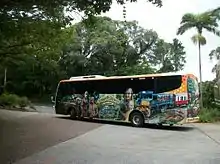 A tour bus service is a bus service that takes visitors sightseeing, with routes around tourist attractions.