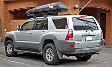 The Toyota 4Runner is a compact, later mid-size sport utility vehicle produced by the Japanese manufacturer Toyota and sold throughout the world from 1984 to present. In Japan, it is known as the Toyota Hilux Surf (Japanese: トヨタ・ハイラックスサーフ, Toyota Hairakkususāfu) which was withdrawn from the market in 2009. The original 4Runner was a compact SUV and little more than a Toyota pickup truck with a fiberglass shell over the bed, but the model has since undergone significant independent development into a cross between a compact and a mid-size SUV. All 4Runners have been built in Japan at Toyota's plant in Tahara, Aichi, or at the Hino Motors (a Toyota subsidiary) plant in Hamura.