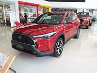 The Toyota Corolla Cross is a compact crossover SUV produced by the Japanese automaker Toyota using the Corolla nameplate primarily for the Southeast Asian market.[4] It was unveiled in Thailand on 9 July 2020 as a more practical and larger alternative to the C-HR and built on the same GA-C platform as the E210 series Corolla.[2][3][5][6] The Corolla Cross is positioned between the C-HR and RAV4 within Toyota's crossover SUV lineup.[3]