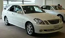 The Mark II Blit was the wagon version of the X110 Mark II. It was introduced in January 2002 as a replacement of the Toyota Mark II Qualis. The Blit was a return to the Mark II platform with rear wheel drive and optional AWD and not a wagon version of the front wheel drive Camry. The Blit used straight-six engines with an optional turbo that was discontinued in May 2006. The engines used were the same as the sedan model.