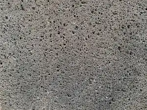 Trachyandesite is an extrusive igneous rock with a composition between trachyte and andesite. It has little or no free quartz, but is dominated by sodic plagioclase and alkali feldspar. It is formed from the cooling of lava enriched in alkali metals and with an intermediate content of silica.[1][2]