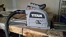 Track saws (often referred to as plunge saws or plunge-cut saws) are a type of hand-held circular saw which slides on a guide rail during operation. This allows the operator to perform long and accurate cuts. Track saws, unlike hand-held circular saws, plunge into the material to a predetermined depth during the cut, increasing operator safety and allowing for reduced splintering and tear-out;[1] the depth-of-cut is not fixed and can be adjusted to be just slightly over the thickness of the board being cut. This property allows a track saw to also cut shallow grooves into the work piece, if necessary.