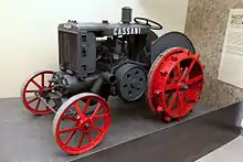 In 1892, John Froelich invented and built the first gasoline/petrol-powered tractor in Clayton County, Iowa, US.[9][10][11] A Van Duzen single-cylinder gasoline engine was mounted on a Robinson engine chassis, which could be controlled and propelled by Froelich's gear box.[12] After receiving a patent, Froelich started up the Waterloo Gasoline Engine Company and invested all of his assets. However, the venture was very unsuccessful, and by 1895 all was lost and he went out of business.[13][14][15][16]