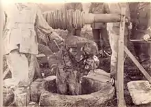On July 21, 1944, men from the French milice led by Joseph Lécussan, and the Gestapo arrested 70 Jewish refugees. Most of them were from Alsace-Lorraine, but had managed to hide in Saint-Amand-Montrond and its surroundings since autumn of 1939. They lived there for five years in relative safety. On a farm, 36 persons where thrown in three different wells along with some stones in order to crush them alive. The victims are men and women aged from 16 to 85.[2]