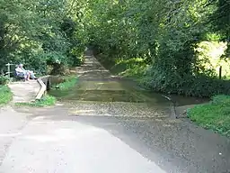 Immediately to the north of the ford, the modern road of Traitor's Ford Lane meets with Ditchedge Lane, a track that is believed to be an ancient trading route. One theory for the naming of the ford is that the name was originally Trader's Ford, named because of its location on this trading route. Another theory is that a traitor was hung here following the Civil War battle of Edgehill, when several local Parliamentarian sympathisers were executed by Royalists.[2]