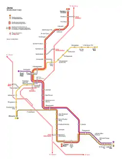 The Jena tramway network (German: Straßenbahnnetz Jena) is a network of tramways forming part of the public transport system in Jena, a city in the federal state of Thuringia, Germany.