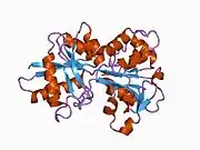 - Hall DR, Hadden JM, Leonard GA, Bailey S, Neu M, Winn M, Lindley PF (January 2002). "The crystal and molecular structures of diferric porcine and rabbit serum transferrins at resolutions of 2.15 and 2.60 A, respectively". Acta Crystallographica. Section D, Biological Crystallography. 58 (Pt 1): 70–80. doi:10.1107/s0907444901017309. PMID 11752780.