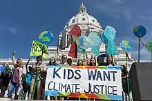 Climate justice is a term used to frame global warming as an ethical and political issue, rather than one that is purely environmental or physical in nature. This is done by relating the causes and effects of climate change to concepts of justice, particularly environmental justice and social justice. Climate justice examines concepts such as equality, human rights, collective rights, and the historical responsibilities for climate change. Climate justice actions can include the growing global body of legal action on climate change issues.[10] In 2017, a report of the United Nations Environment Programme identified 894 ongoing legal actions worldwide.[11]