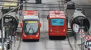 One of the earliest and most successful examples of TOD is Curitiba, Brazil.[13] Curitiba was organized into transport corridors very early on in its history. Over the years, it has integrated its zoning laws and transportation planning to place high-density development adjacent to high-capacity transportation systems, particularly its BRT corridors. Since the failure of its first rather grandiose city plan due to lack of funding, Curitiba has focused on working with economical forms of infrastructure, so it has arranged unique adaptations, such as bus routes (inexpensive infrastructure) with routing systems, limited access and speeds similar to subway systems. The source of innovation in Curitiba has been a unique form of participatory city planning that emphasizes public education, discussion and agreement.[14]