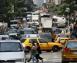 New York is the only city in the United States where over half of all households do not own a car (Manhattan's non-ownership is even higher, around 75%; nationally, the rate is 8%).[8] However, absolute figures for car ownership are still high when compared to other cities: in 2019, 55% of households were not car owners, indicating that 45% of households did own a car.[9]
