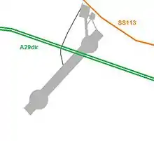 In 1976 with the construction of the motorway A29 the runway was cut in half and a small road bridge connects the two parts of runway.