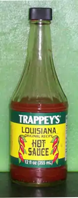 Trappey's Hot Sauce is an American brand of hot sauce that was originally produced by the New Iberia, Louisiana-based company Trappey's Fine Foods, Inc. Trappey's was purchased by B&G Foods in 1997.[1][2] Trappey's makes Red Devil Cayenne Pepper Sauce, Bull Louisiana Hot Sauce, Indi-Pep Pepper Sauce, Chef Magic Jalapeño Sauce, Trappey's Cut Okra, Trappey's Creole Okra Gumbo, Trappey's Cocktail Okra (mild and hot varieties) and pickled jalapeños.