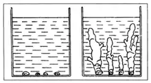 The Traube precipitation membrane consists of copper ferrocyanide and forms readily on a surface of crystal potassium ferrocyanide when the crystal is put into a dilute solution of copper sulfate. The membrane is semi-permeable, and expands rapidly into the Traube cell. Within the cell is a high concentration of potassium ferrocyanide with strong osmotic force. While it cannot diffuse outward, water and the copper sulfate solution can flow inwards. When the expansion caused the membrane to burst, a new membrane was quickly formed. In this way, the cell could "grow" and become several centimeters long.[2] The ability of the Traube cell membrane to allow water to flow in while retaining the cell solute is comparable to living cells.[3]