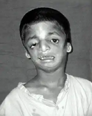 | Symptoms | Deformities of the ears, eyes, cheekbones, chin[5] |