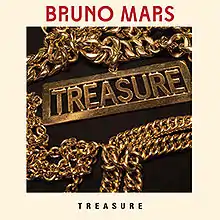 "Treasure" is a song by American singer and songwriter Bruno Mars for his second studio album, titled Unorthodox Jukebox (2012). "Treasure" was written by Mars himself along with Philip Lawrence, Ari Levine, and Phredley Brown, while production was handled by Mars, Lawrence and Levine under the name of The Smeezingtons. Due to the similarities shared with Breakbot's "Baby I'm Yours", new writing credits were added. The song was selected as the third single by Atlantic Records and was released to mainstream radio in Italy on May 10, 2013.