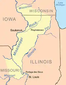 The Treaty of St. Louis of 1804 was a treaty signed by William Henry Harrison for the United States and representatives of the Sauk and Meskwaki tribes led by Quashquame, signed on November 3, 1804, and proclaimed on February 21, 1805. Despite the name, the treaty was conducted at Portage des Sioux, Missouri, located immediately north of St. Louis, Missouri. In exchange for an annual payment of $1,000 in goods to be delivered to the tribe in St. Louis ($600 for the Sacs and $400 for the Fox), the tribes gave up a swath of land stretching from northeast Missouri through almost all of Illinois north of the Illinois River as well as a large section of southern Wisconsin. This treaty was deeply resented by the Sauk, especially Black Hawk, who felt that Quashquame was not authorized to sign treaties. This treaty led to many Sauk siding with the British during the War of 1812.