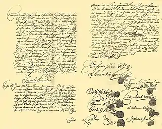 The Treaty of Szatmár (or the Peace of Szatmár) was a peace treaty concluded at Szatmár (present-day Satu Mare, Romania) on 29 April 1711 between the House of Habsburg emperor Charles VI, the Hungarian estates and the Kuruc rebels. It formally ended Rákóczi's War of Independence, which had endured since 1703.