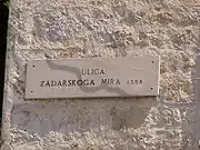 The Treaty of Zadar, also known as the Treaty of Zara, was a peace treaty signed in Zadar, Dalmatia on February 18, 1358 by which the Venetian Republic lost influence over its Dalmatian holdings. The Treaty of Zadar ended hostilities between Louis I of Hungary and the Republic of Venice, who were contesting control of a series of territories along the eastern Adriatic coastline in present-day Croatia.