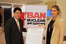 The ICAN has been the main civil society actor working alongside governments to achieve a strong and effective ban treaty.[64] The International Red Cross and Red Crescent Movement has also championed an agreement to prohibit and eliminate nuclear weapons,[65] describing the UN working group recommendation to negotiate a ban in 2017 as "potentially historic".[66] Thousands of scientists from around the world signed an open letter in support of the negotiations.[67]