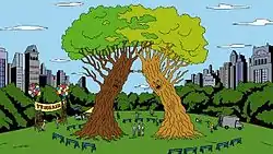 ![]() Tree creatures Neel and Nicky in Central Park before the mating ritual commences | |
