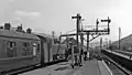 Train arriving in the 1960s