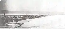 But this argument backfired; Blair agreed a canal was needed, but argued instead for a new system along the St. Lawrence.[48] Laurier himself strongly supported railways, especially the Grand Trunk Railway.[49] Once again the Association swung into action, bringing over 270 delegates to a meeting on the issue in Ottawa. The Grand Trunk, whose line along the St. Lawrence stood to lose considerable traffic if an alternate shipping route was completed, provided free train tickets to everyone involved. The result was a huge crowd of businessmen who descended on Ottawa on 6 April 1897, and began a series of speeches calling for the completion of the Trent. After some time, Laurier himself rose to speak and stated "The government has adopted the completion of the Trent Valley route as part of their policy."[50] This was met by thunderous applause.[50]