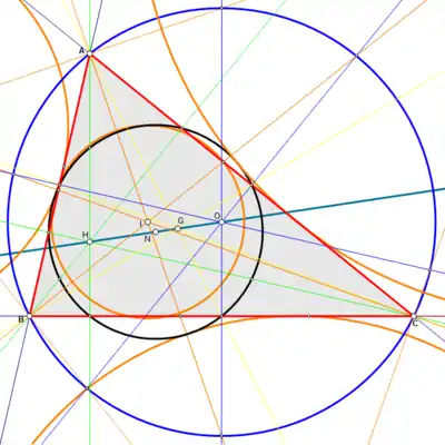 Even though the ancient Greeks discovered the classic centers of a triangle they had not formulated any definition of a triangle center. After the ancient Greeks, several special points associated with a triangle like the Fermat point, nine-point center, Lemoine point, Gergonne point, and Feuerbach point were discovered. During the revival of interest in triangle geometry in the 1980s it was noticed that these special points share some general properties that now form the basis for a formal definition of triangle center.[1][2] As of 1 September 2020, Clark Kimberling's Encyclopedia of Triangle Centers contains an annotated list of 39,474 triangle centers.[3]