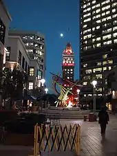 The building was declared a city landmark on May 4, 1976. At various times, the building has flown a flag with the word, "THERE" emblazoned upon it.[3] This is a send-up of Gertrude Stein's comment that in Oakland "there is no there there."[4]