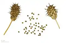 Blue fenugreek is widely used in Georgian cuisine, where it is known as utskho suneli.[4] It is one of the ingredients of the Georgian spice mix khmeli suneli.[6] Both the seeds, the pods and the leaves are used. The smell and taste are similar to ordinary fenugreek, but milder.[7] In Switzerland it is used for flavouring the traditional schabziger cheese.[8]