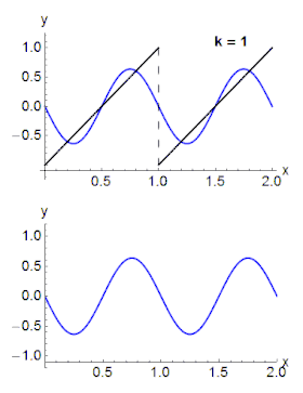 Under rather general conditions, a periodic function f(x) can be expressed as a sum of sine waves or cosine waves in a Fourier series.[22] Denoting the sine or cosine basis functions by φk, the expansion of the periodic function f(t) takes the form: