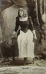 The London premiere on 30 October 1895 was the company's first presentation at the Haymarket since returning from their American tour. Potter's original script was revised for Tree, who himself played Svengali, giving even more significance to the role of Svengali in the play than in the novel.[5] For the lead role of Trilby O'Ferrall he chose the 20-year-old Dorothea Baird, who had made her London debut in 1894 as Hippolyta in A Midsummer Night's Dream. Tree directed the production. The musical director was Raymond Rôze, and the choreographer was John D'Auban. The play was a huge financial success, and from the profits Tree built Her Majesty's Theatre. Fifty years later Max Beerbohm persisted in his evaluation of the play, telling his biographer Samuel Behrman, "I was right about Trilby."[2]