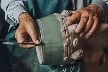 ![]() Núñez in his workshop in Victoria de Durango, Mexico | |