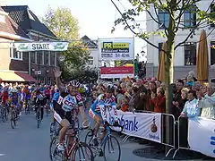 Hoffman accompanied by colleagues at his goodbye race in Groenlo, Netherlands.