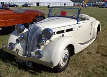 The Triumph Dolomite is a car that was produced by Triumph Motor Company from 1934 to 1940. It first appeared in 1934 as a sports car and the name was also used from 1937 on a series of sporting saloons and open cars until 1939 when the company went into receivership. A number were still sold and registered in 1940, though it is uncertain whether the receiver or new owner turned out cars from spare parts, or sold off completed cars. All except the Straight 8 featured a "waterfall" grille styled by Walter Belgrove, versions of the saloons with conventional grilles were sold as Continental models.[1]