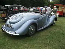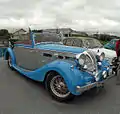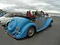 This is an open version of the 14/65, announced 29 March 1938,[11] with seating for three people on a single bench seat and "two additional outside seats in the tail, reminiscent of the dickey seat that was at one time common"[10] for two more people behind. The hood folded completely into the body to give the appearance of an open sports car. The car was announced with the 1,767 cc (107.8 cu in) engine with twin SU carburettors.[11]