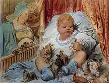Notable performances of the Trois petites pièces montées during Satie's lifetime include conductor Gabriel Pierné's rendition with the Concerts Colonne on December 17, 1921,[31] and Vladimir Golschmann's four presentations in concerts sponsored by the Ballets suédois (October 25 to 31, 1923). [32] In June 1924, choreographer Leonide Massine assembled two of Satie's piano duets, Trois morceaux en forme de poire (1903) and the keyboard reduction of the pièces montées, into the ballet Premier Amour for the Soirées de Paris stage company at the Théâtre de la Cigale. It was a solo number starring Lydia Lopokova as a girl who dreams she falls in love with a doll. Satie and Marcelle Meyer played the piano during its handful of performances.[33][34] Since Satie's death the original version of the suite has been largely neglected, even by conductors (Maurice Abravanel, Michel Plasson) who committed much of his modest orchestral catalog to disc.[35]