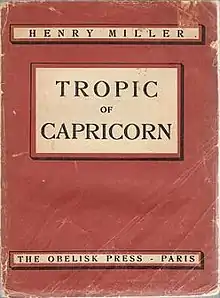 Tropic of Capricorn is a semi-autobiographical novel by Henry Miller, first published by Obelisk Press in Paris in 1939. A prequel of sorts to Miller's first published novel, 1934's Tropic of Cancer, it was banned in the United States until a 1961 Justice Department ruling declared that its contents were not obscene.