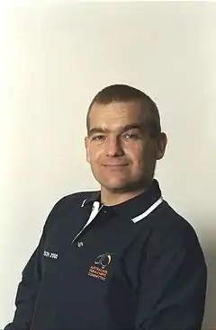 Troy Kenneth Andrews, OAM[1](born 1 December 1961) [2] is an Australian wheelchair basketball player and shooter, who has represented Australia at five Paralympics from 1984 to 2000. He was born in the New South Wales city of Broken Hill. [2] At the 1984 New York/Stoke Mandeville Games, he came fourth in the Men's Air Pistol 2-6 - event.[3] He was part of the Australia men's national wheelchair basketball team at the 1988 Seoul, 1992 Barcelona, 1996 Atlanta, and 2000 Sydney Games.[4] He won a gold medal as part of the winning Australian team in 1996,[4][5] for which he received a Medal of the Order of Australia.[1] In 2000, he received an Australian Sports Medal.[6]