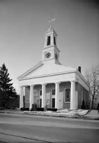In the 19th century Trumansburg was dominated by Col. Hermon Camp, an officer in the War of 1812 who settled in what was to become the village. For many years he was the local postmaster, and founded a bank, now the Tompkins Trust Company, the largest bank in the county. His imposing and elegant Greek Revival style house remains the largest in the village. The Hermon Camp House was listed on the National Register of Historic Places in 1973.[3] Also listed on the National Register of Historic Places are the First Presbyterian Church of Ulysses, William Austin House, Indian Fort Road Site, and Second Baptist Society of Ulysses.[3]