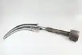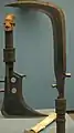Similar to a sickle, the trumbash was used as a throwing weapon or as currency.[1][2] The handle is usually made of wood, but it can be made of ivory or bone. It is more or less decorated, according to the rank of its owner and the use that is made of it.[3] The curved blade is made of iron.