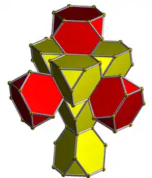 The bitruncated 5-cell can be seen as the intersection of two regular 5-cells in dual positions. ![]()