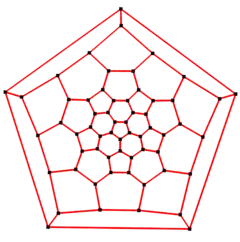 In the mathematical field of graph theory, a truncated icosahedral graph is the graph of vertices and edges of the truncated icosahedron, one of the Archimedean solids. It has 60 vertices and 90 edges, and is a cubic Archimedean graph.[4][5][6][7]