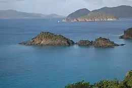 Trunk Cay is a small grass-covered islet in Trunk Bay in the United States Virgin Islands. It has an elevation of 48 feet and is situated only 200 feet from Trunk Bay Beach.[1] It is an islet of rocky cliffs, coral sandy beaches, and palm trees. The Virgin Islands National Park Service offers underwater snorkelling trails around the cay. Trunk Cay is named for the leatherback turtle, which is found in the U.S.V.I. and is locally known as trunks.[2]