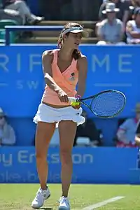 Tsvetana Kirilova Pironkova (Bulgarian: Цветана Кирилова Пиронкова [tsvɛˈtanɐ piroŋˈkɔvɐ]; born 13 September 1987) is a Bulgarian professional tennis player. Considered to be one of the best grass court players of her generation, she has been noted for her "cerebral" skills on the surface.[2][3] Pironkova also found success playing on the quick hard-courts throughout her career, winning a title in Sydney and reaching the quarterfinals of the US Open.[4][5]